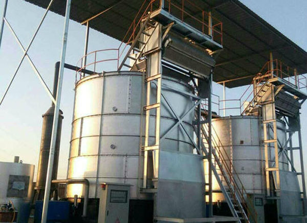 ?、诜椒ǎ喊l(fā)酵塔堆肥有從頂部進(jìn)料、底部出料的筒倉(cāng),通風(fēng)系統(tǒng)使空氣從筒倉(cāng)的底部通過堆料,在筒倉(cāng)的上部收集和處理廢氣。新鮮的畜禽糞便和各種輔料,攪拌均勻后經(jīng)皮帶或料斗設(shè)備提升到塔式反應(yīng)器的發(fā)酵筒倉(cāng)內(nèi),物料被連續(xù)或間歇地加入塔式反應(yīng)器,通常允許物料從反應(yīng)器的頂部向底部周期性地移行下落,同時(shí)在塔內(nèi)通過翻版的翻動(dòng)或風(fēng)管進(jìn)行通風(fēng)、干燥。